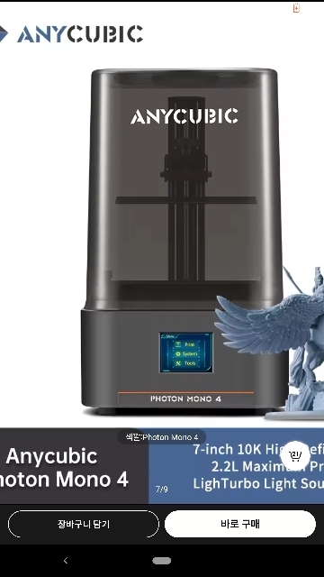 ANYCUBIC Photon Mono 4 LCD 3D Printer 7” 10K high-definition screen 3D Printing 2.2L Build Volume UV Resin 3D Printers