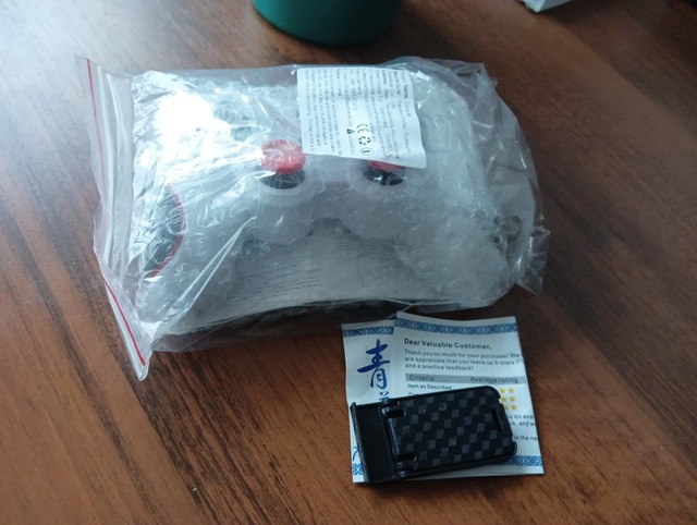 Arrived perfectly packed, three layers of protection. Reached what I ordered, a white controller with a Wi-Fi receiver. Tested performance through 2.4G. There is a cable for a sighting, a stand for a phone was added “as a gift” (pictured). Instruction only in Chinese and English. Verdict-you can take.